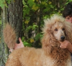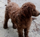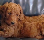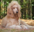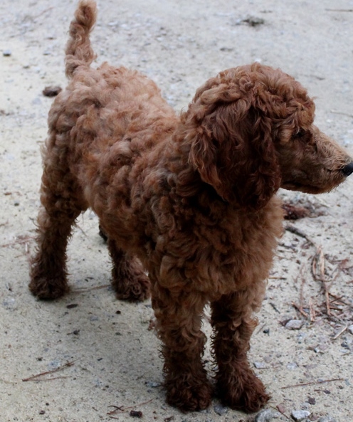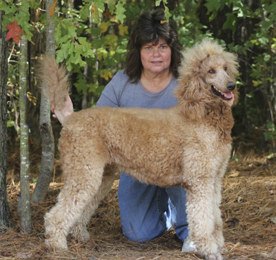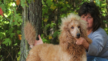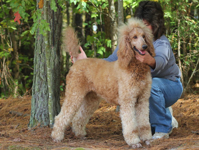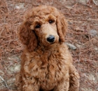 I have been taking Scarlet to our town park 5 – 6 mornings a week.  We walk around the lake meeting other owners with their dogs.  We do 2.5 to 3 miles each day.  Scarlet has become very socialized with men, women and other dogs.  She walks great on the leash and has learned the usual commands like sit, lie down, up, give me five.  She has even learned go right and go left when we come to a cross walk. She is the queen of the lake park with all the ladies that walk there.