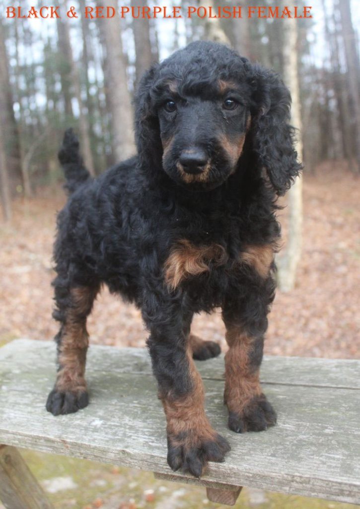When our Standard Poodle puppies are born they are individually identified with a small bit of different colors of nail polish, applied to the rump for the males and between the shoulders for the females. We have found in the past 25 years this to be the safest method of identifying our babies. In the past we have tried using, yarn which could be ingested and cause a blockage in the puppy. We tried the litter collars and puppy’s feet would get hung up in them. The litter collars would also sometimes get hung on a bucket hanger or even around their mom’s hair choking them. This polish color stays with the puppy for its entire time here at FAMILY AFFAIR STANDARD POODLES and used for identification on the Website.